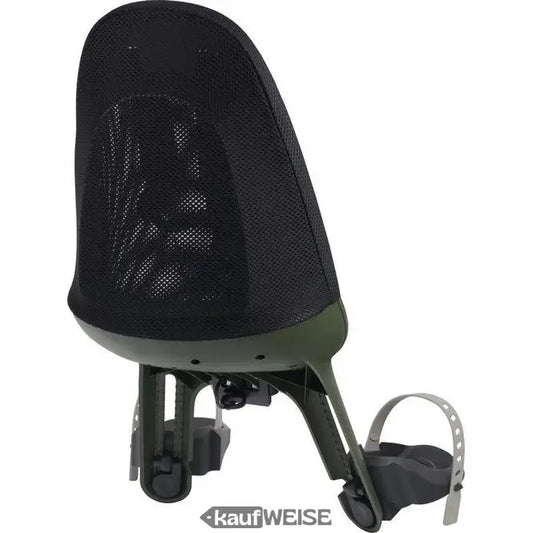 Предна велосипедна седалка Qibbel Air, черно/зелено | Монтаж на кормило | 9 месеца - 3 години (15 кг) | Мрежеста облегалка